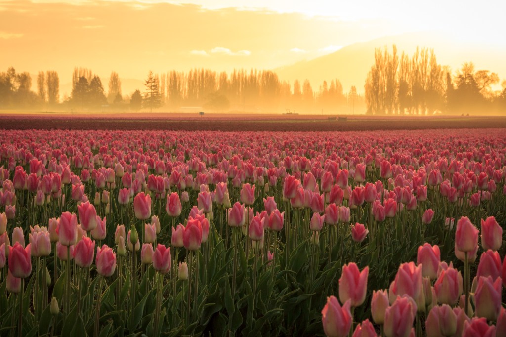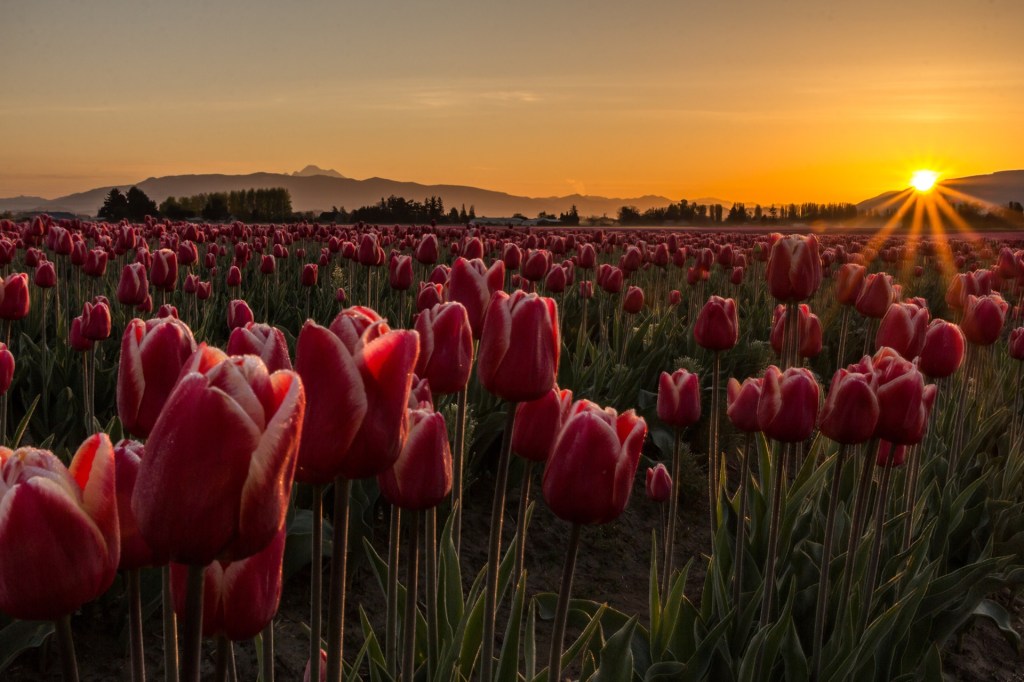 Concentrating most of my photography on landscapes, I’m no stranger to an early-morning photo shoot. Still, getting up to greet a sunrise takes a certain amount of sacrifice I seldom muster. Even working in Skagit County, where I’ve captured the beauty of the tulip fields during the annual festival for years, I’ve never coaxed myself out of bed early enough to see the blooms at sunrise. Until this year.